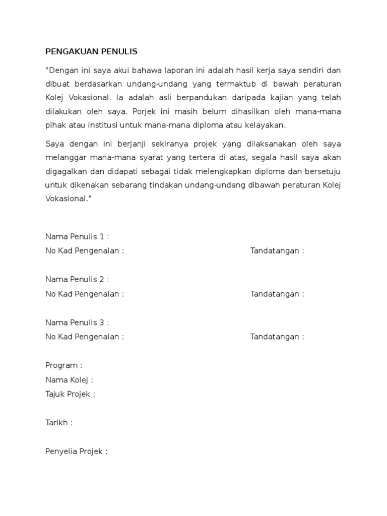 Contoh penulisan projek tahun akhir kolej vokasional bab pengenalan pengenalan umum projek ini adalah inovasi hasil daripada. Cara ini digunakan untuk menyiapkan laporan projek pta. Assignment Projek Tahun Akhir Teknologi Automotif Kolej Vokasional Lebuh Cator Ipoh.